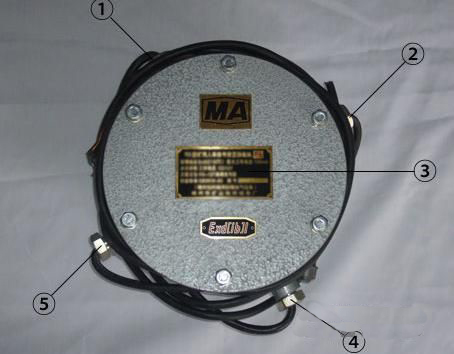 ①:交流~127V輸入;②:接點輸出;③:銘牌;④:直流輸入;⑤:直流12V輸出