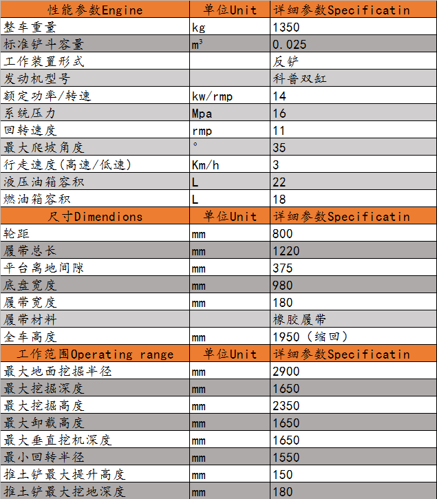 DLS20微型履帶挖掘機(jī)參數(shù)