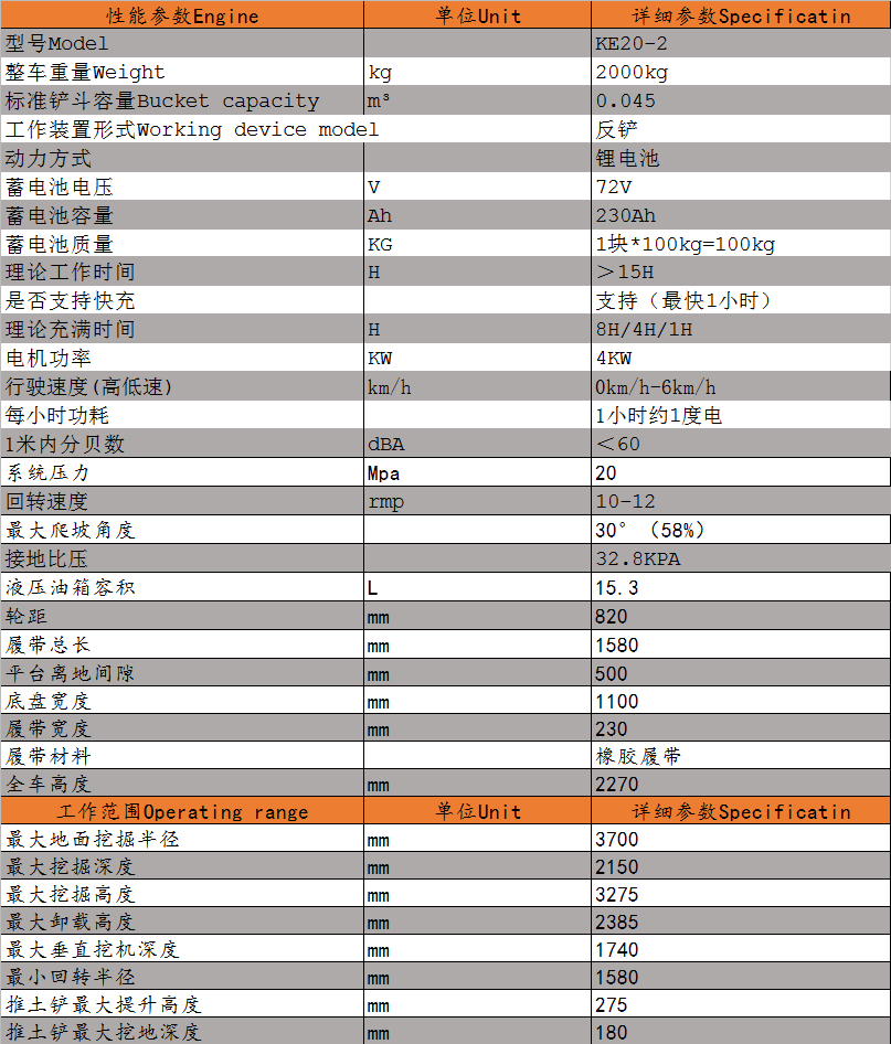 DLS20電動微型履帶挖掘機參數