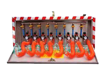 壓風自救器一般形成系統(tǒng)后使用,即由若干組壓風自救裝置安裝在同一個地點形成壓風自救站,每組一般由3~5個頭組成,每個地點裝多少個頭,應視該工作場所的工作人數(shù)而定,其安裝頭數(shù)應大于在該場所工作的人數(shù)。該裝置系統(tǒng)結構簡單,價格便宜,是一種經濟型永久性自救裝置系統(tǒng)。
