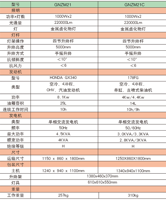 GNZM21  21C手推式照明車參數