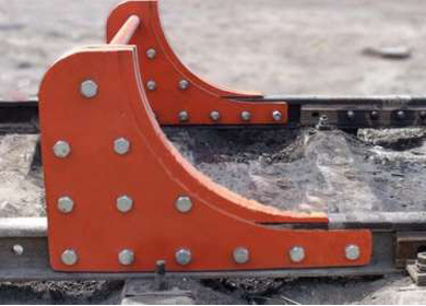 月牙擋車器主要用于43kg、50kg、60kg軌型,由于庫內停留車輛與月牙擋車器距離近,而且庫內股道坡度小或者沒有坡度,車輛即使溜逸速度也很低,所以設計了月牙擋車器,安裝于線路終端,如遇車輛溜走,撞上月牙擋車器,溜逸車輛將被強行擋住。
