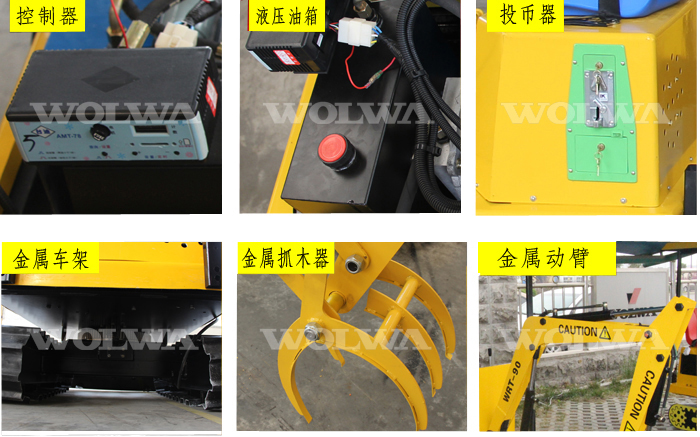 兒童抓木機是游樂設備的一種,是以電機為動力,通過液壓泵控制單元把壓力分配到單個油缸的過程。主要由下底盤、上底盤、動臂、斗桿、爪、動力單元、控制單元、回轉支承、回轉馬達、液壓油缸、電子輔助控制系統組成,運行速度較慢,可控性強是一款高仿真抓木機。