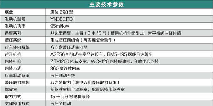 該產品是經國家檢驗機構認可的小型汽車起重機,以唐駿歐鈴專用汽車吊裝底盤做行走,駕駛更舒適、安全。可安裝電機泵站,直接以380V電源作動力,節約環保。該產品通過全國機動車公告公示,在全國各地均可上牌照,并且購置費及其他營運費用全免,產品輕便靈活,價位低廉,適用于農村及城鄉結合部工作。低價位投資,高檔產品回報。